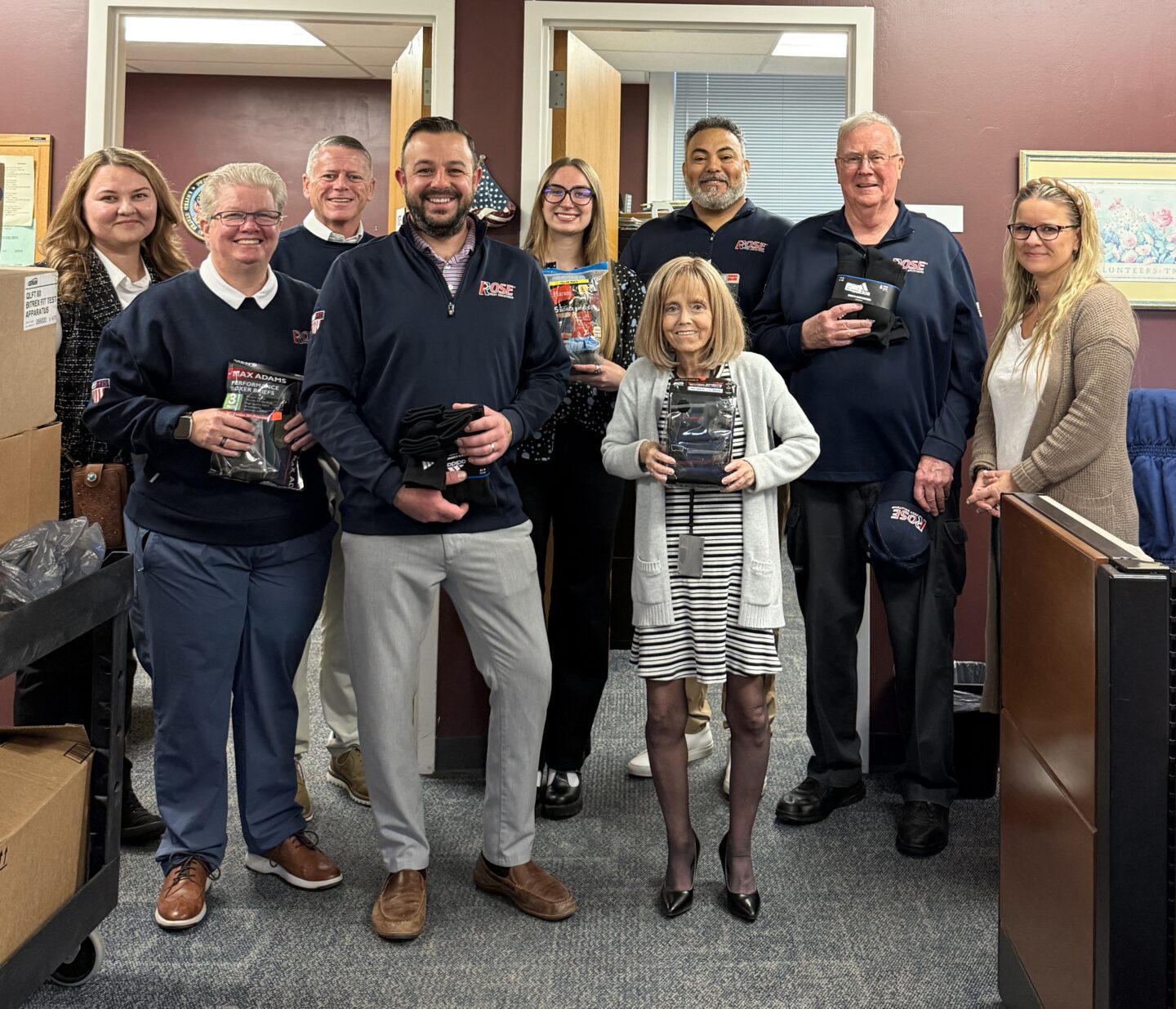 Northfield, Ill. (November 15, 2025) -- As part of its ongoing commitment to helping U.S. Veterans, Rose Pest Solutions and sister company Franklin Pest Solutions employees donated hundreds of clothing items for Veterans being served by Hines VA Medical Center in Hines, Ill., 12 miles west of downtown Chicago.